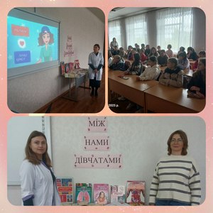 Медична сестра Ірина Александрова розповіла про зміни, які відбуваються з організмом під час дорослішання, про турботу про здоров'я та правила гігієни. Бібліотекар Тетяна Матвієнко познайомила учениць із корисними книжками, що допомагають краще зрозуміти себе у цей важливий період.